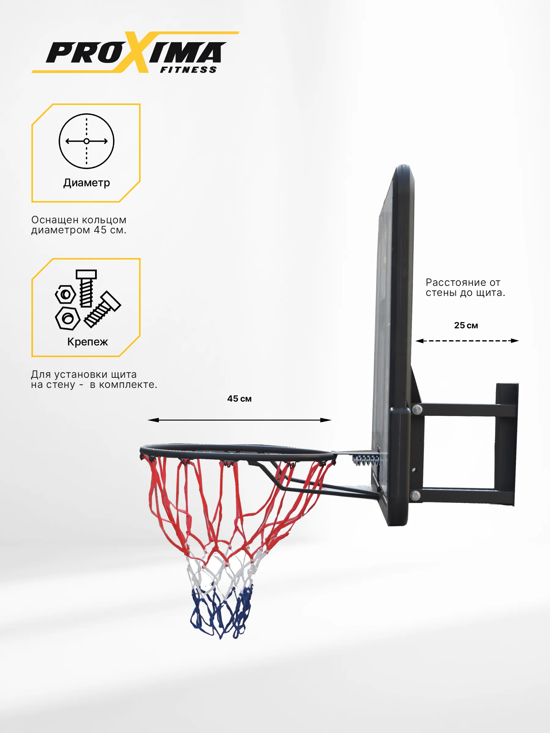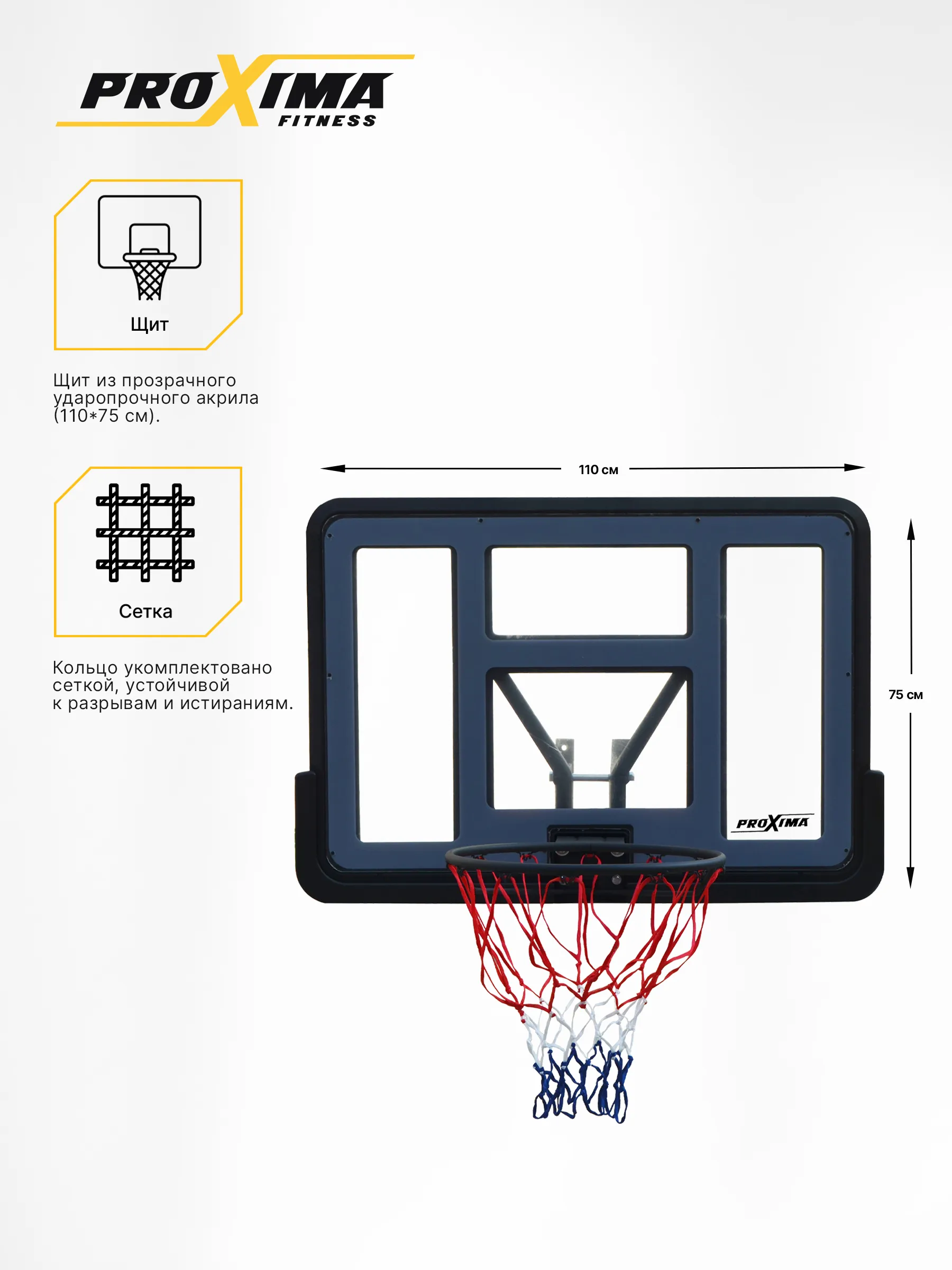 Баскетбольный щит Proxima 44, акрил, арт. S007